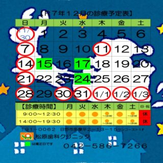 2025 12/01 【お知らせ】12月の診療日 2025.12.01 お知らせ, 今月の診療日, 歯科矯正 お知らせ・ 休診日・ 矯正 今月の休診日は 12/11(木) 12/30(火) 12/31(水)と日曜日です 年明けは 1/5(月)からの診療です 矯正相談日は 12/15(月) 12/17(水) 12/24(水)となりますのでご希望の方はご連絡ください